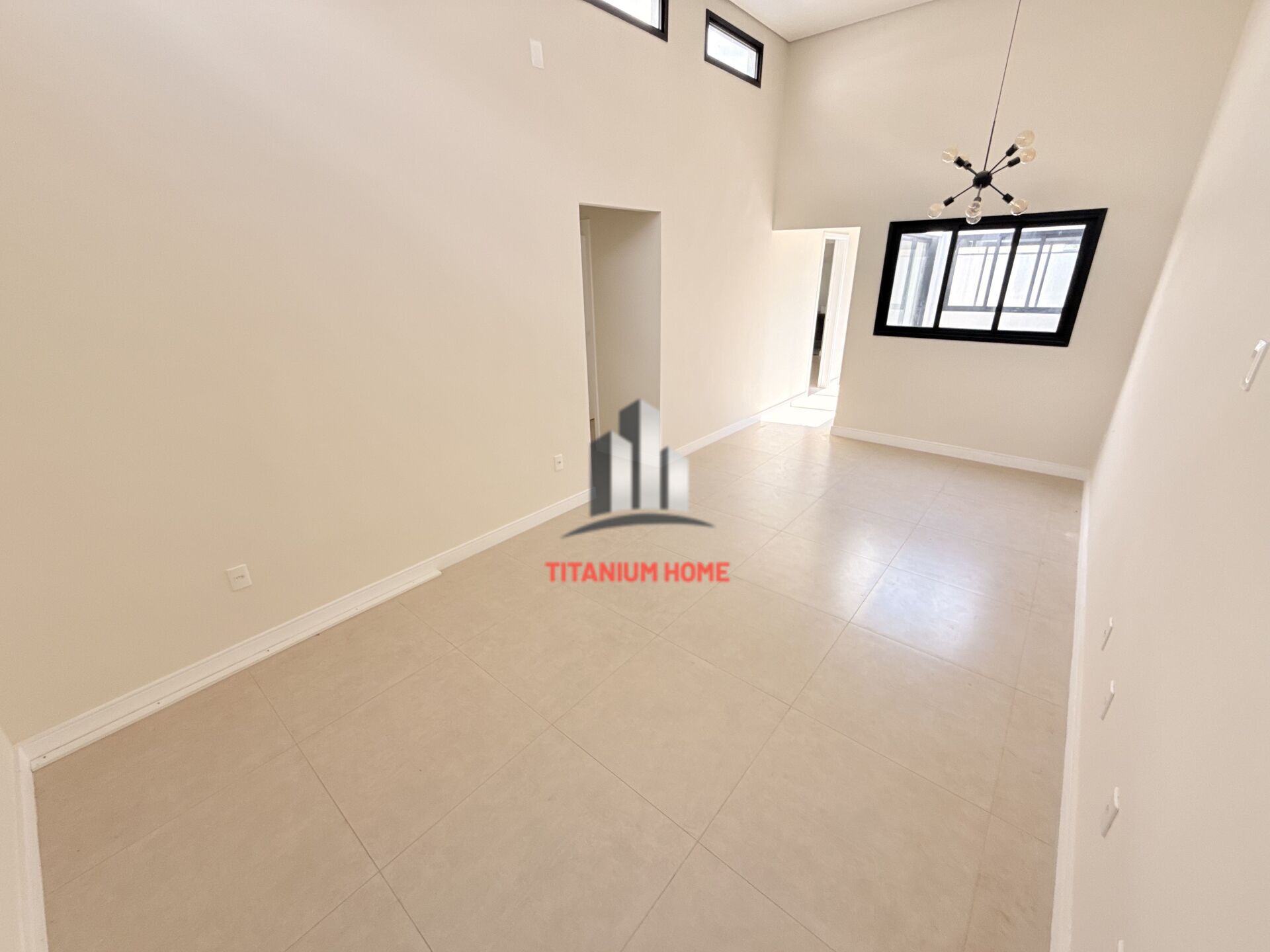 - Sala com pé direito elevado integrada com a cozinha